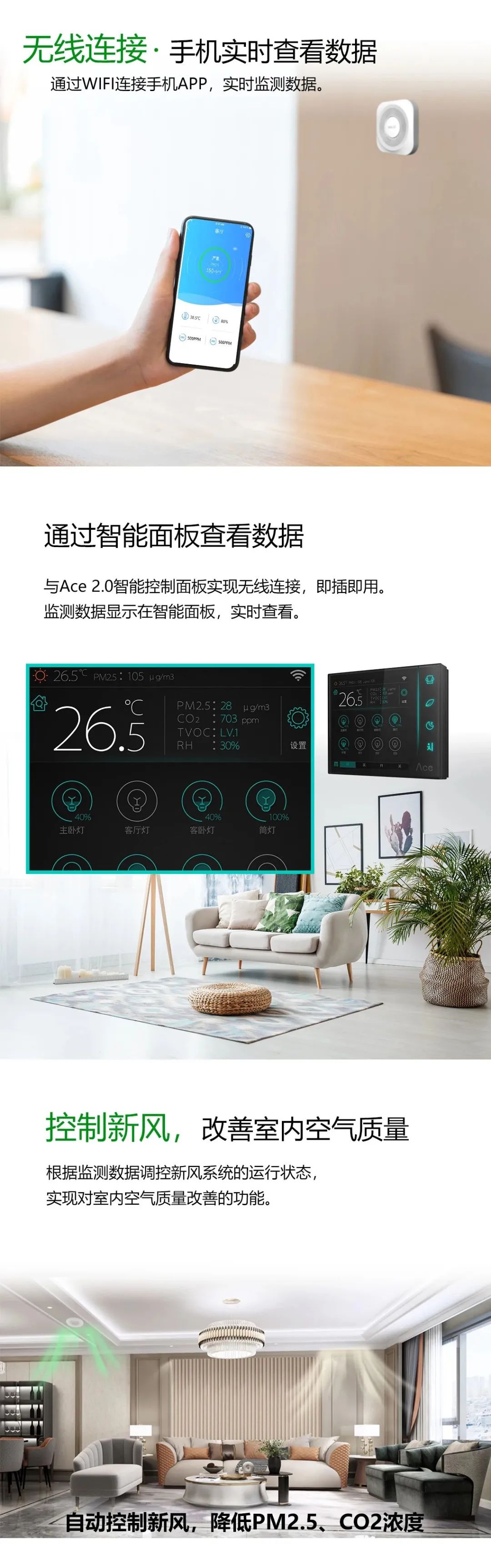同時也越來越多地應用在樓宇自控系統和智能家居系統中,甚至很多樓宇加設獨立的空氣質量檢測系統。如:西安國際醫學中心、亞投行總部大樓、太原市政府辦公樓、廈門萬安智能辦公大樓等項目。