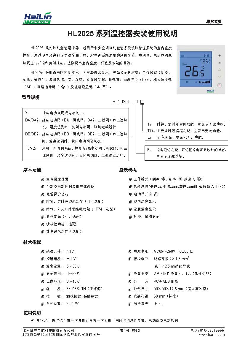 HL2025系列風機盤管溫控器,適用于中央空調風機盤管系列或風管道系統的室內溫度控制,通過室內溫度和設定溫度相比較,對空調系統末端的風機盤管、電動閥電動球閥或風閥進行開啟和關閉控制,達到調節室內溫度、舒適及節能的目的。
